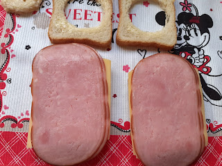 Cubra o presunto, com as fatias de pão que foram cortadas.